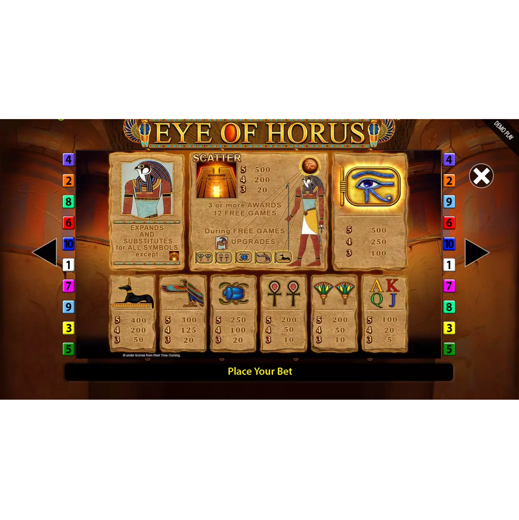 Welche Gewinnlinien bietet Eye of Horus?
