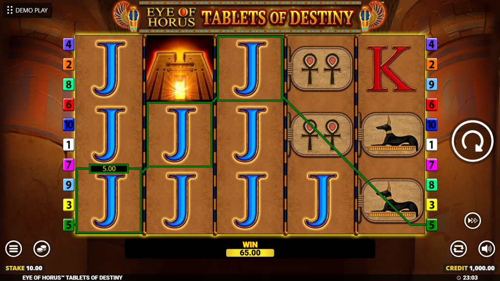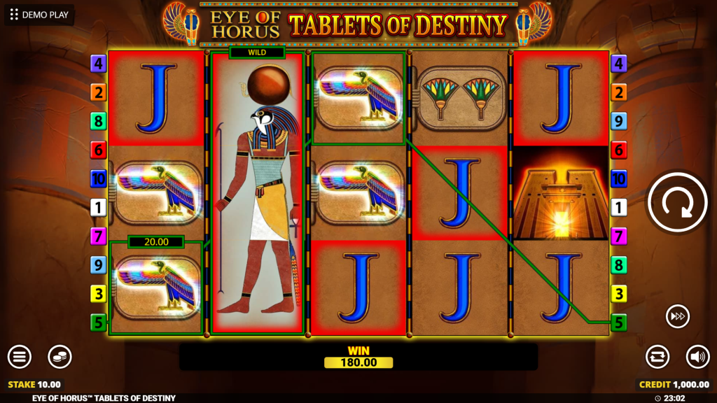 Ein Einsatz von 10 € pro Spin zählt bei Eye of Horus klar zur High-Stake-Kategorie.