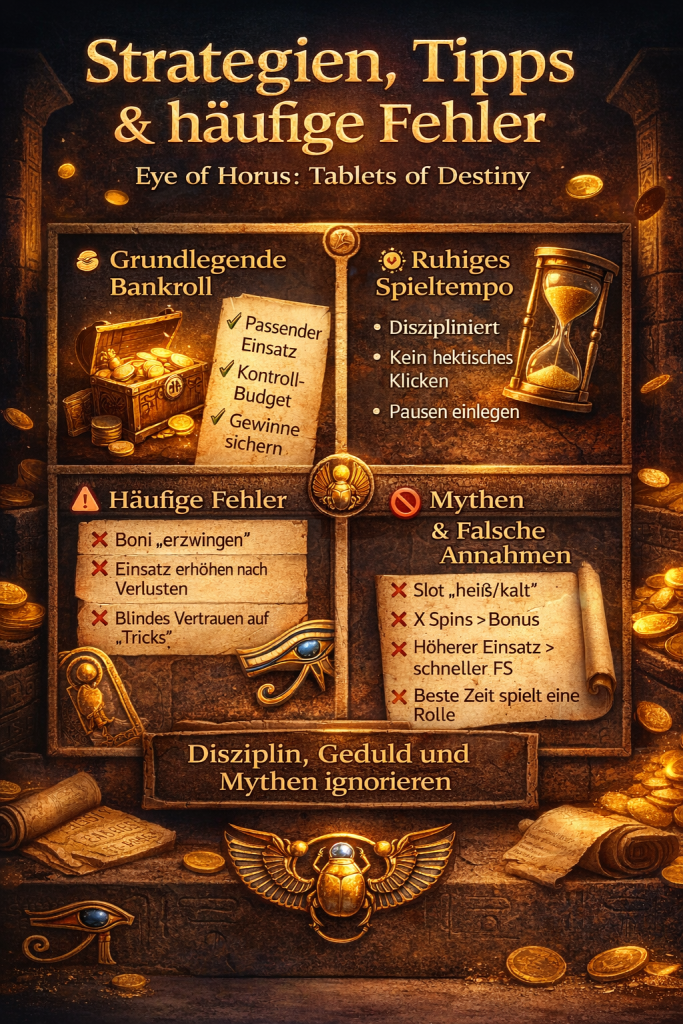 🔹 Strategien, Tipps & häufige Fehler – Eye of Horus: Tablets of Destiny